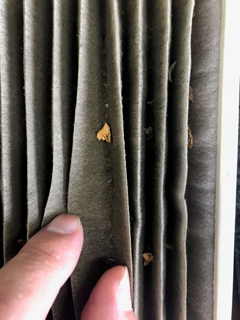 ホコリやチリ、虫や葉など色々と詰まっていました!!話を聞いてみると、エアコンの風量が弱かったり、匂いも気になられていたそうです。