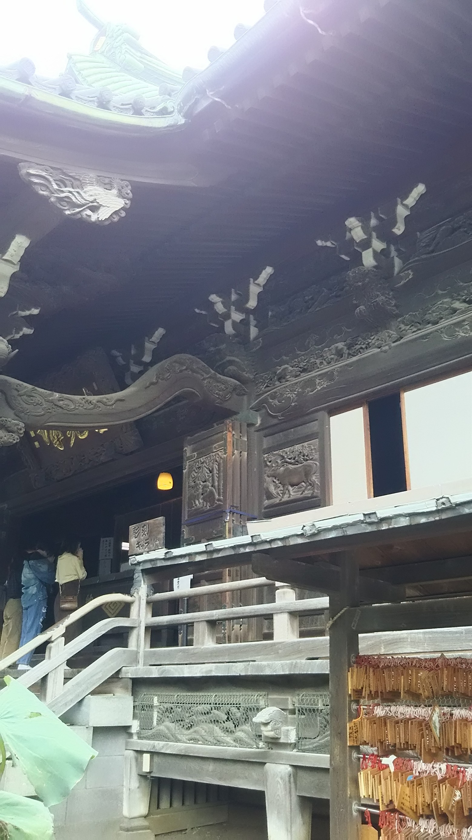 本殿の彫刻が見事。下は海。天井は宇宙を表しているそうです。その真ん中に地上にいる十二支が描かれていました。