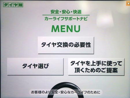 タイヤ館倉吉ではタブレットを使って安全・安心・快適のためのカーライフサポートをお手伝いします。
