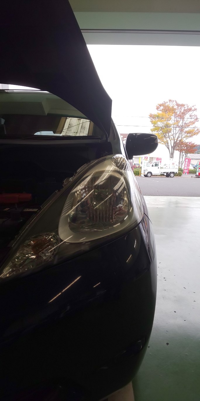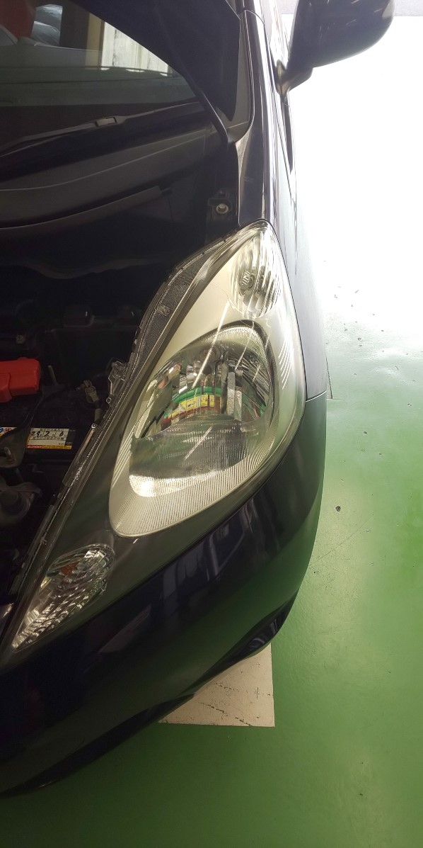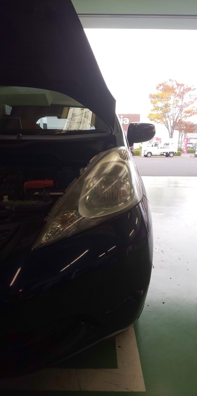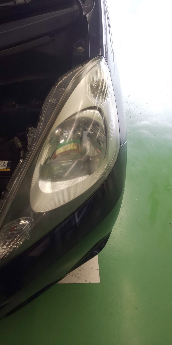 先日タイヤ交換でご来店のお客様の安全点検をしたところ、ライトがくすんでいたので、ヘッドライトコーティングを施工しました。