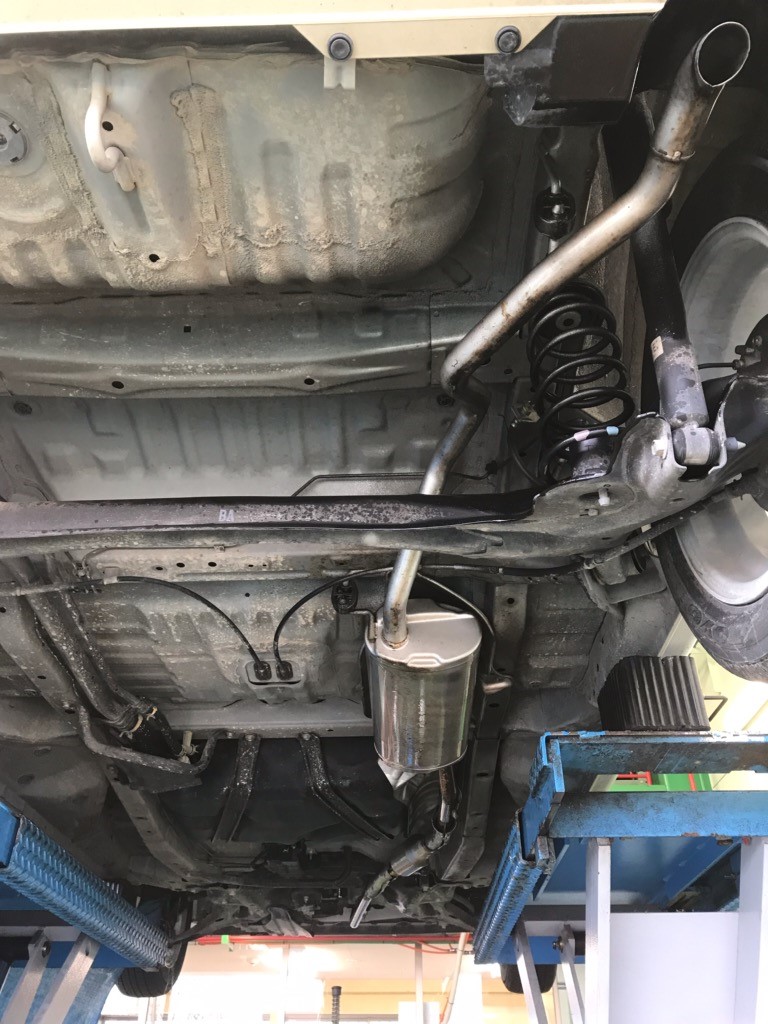 マフラ-防錆コ-ティング施工☆ ポスト 2018年12月27日 こんにちは。スタッフのモリです♪ タイヤ交換でご来店いただきました。 ついでにマフラ-も見させていただくと・・・ 錆が発生していました!! これからの時期、凍結防止のために融雪剤がまかれてしまいます。 この融雪剤がマフラ-を錆させます。 今回は、この錆の進行を止めるために マフラ-防錆コ-ティングを施工しました☆ これで、錆を食い止めて、マフラ-の劣化を抑えられますね☆ 担当:森