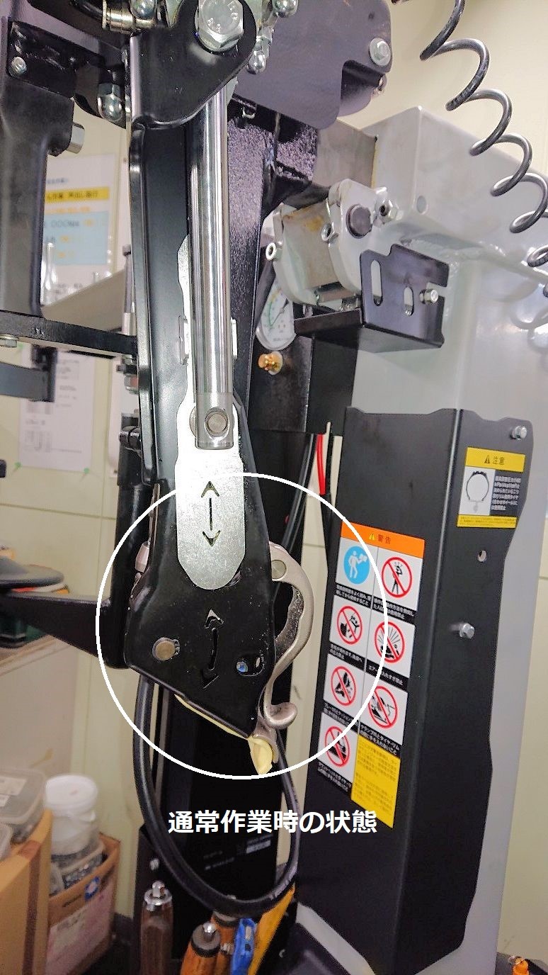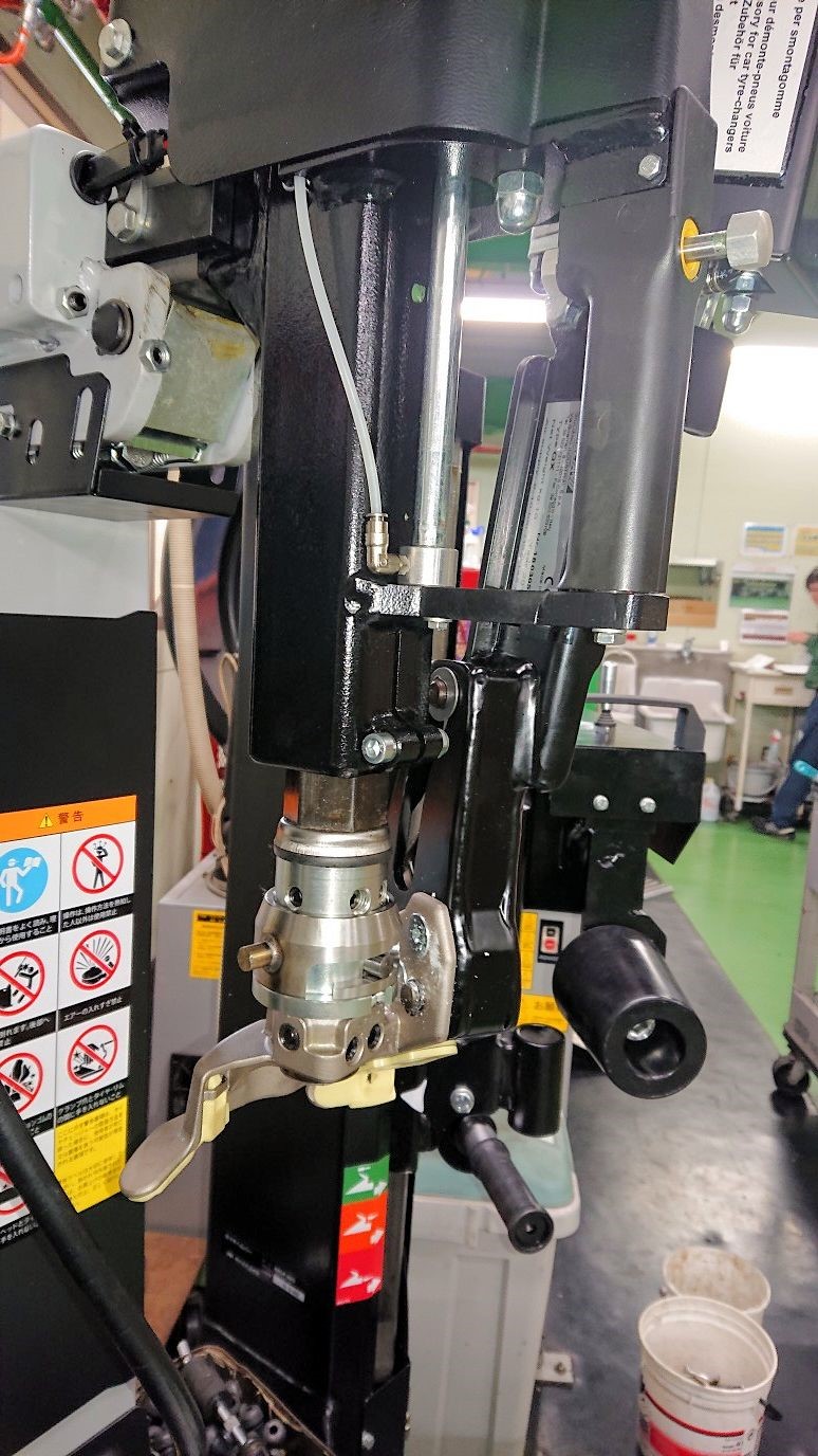 当時最新式だったタイヤチェンジャーも経年劣化でアームのしなりもあり、