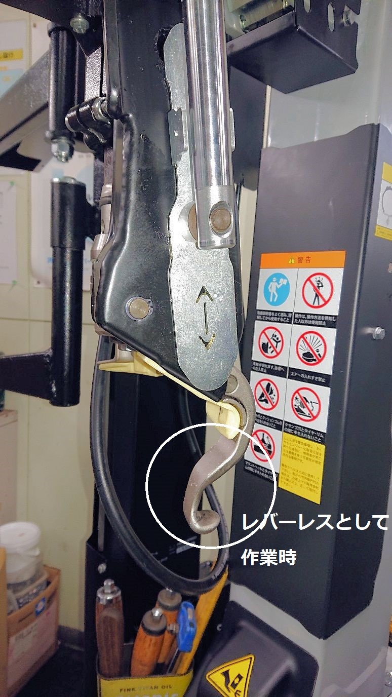 このチェンジャーはレバーレスでタイヤのビードをめくりあげることができるので