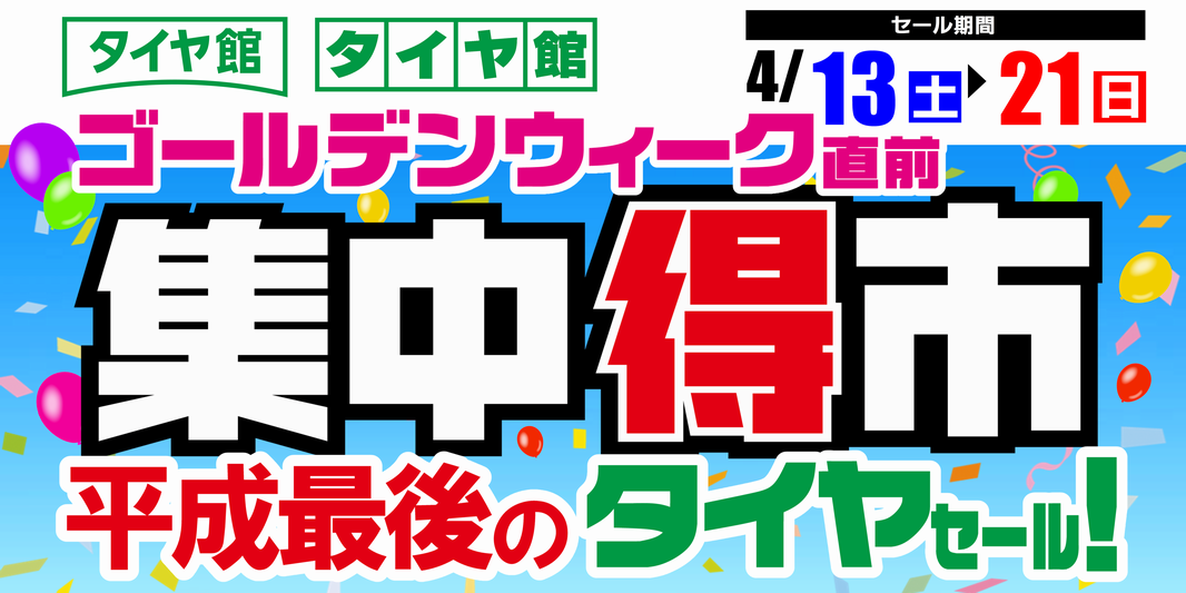集中得市開催! ポスト 2019年4月13日 ようやく暖かい日が続くようになりましたね! さて4月13日(土)から4月21日(日)まで 集中得市を開催します。 タイヤ、ホイールだけでなく、今まで欲しいけど我慢していた 用品などこの機会にお得にGETしちゃいましょう! ゴールデンウィークに遠出をされる方も、この機会に しっかりメンテナンスをしておきましょうね! みなさまのご来店をスタッフ一同お待ちしています。 カテゴリ:お知らせ