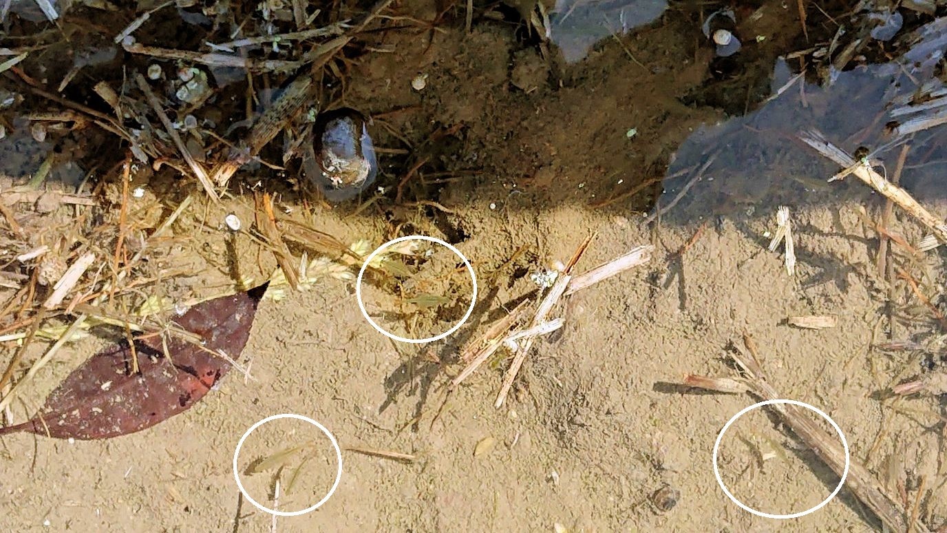 散歩の途中田んぼを見てみるとオタマジャクシだけでなく、
