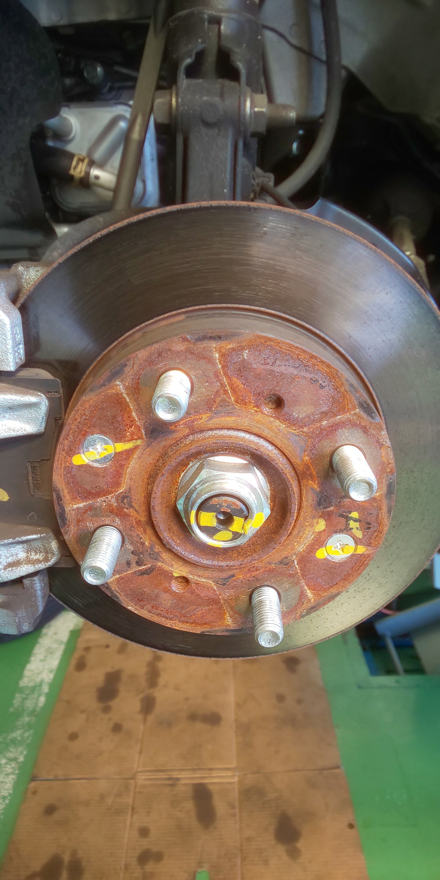 先ほどのN-VANのお客様で全体防錆と一緒にハブ防錆も施工しました。