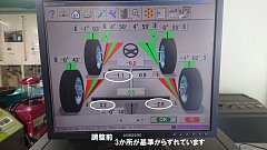 VOXYのタイヤ交換をしました。 新車時のタイヤが減ったためですが、タイヤを見てみると 内側の方が減っていました。 このまま新品タイヤに換えても同じ症状が出てしまい もったいない減り方をしてしまいます。 そこでアライメント調整(車の骨盤矯正)ですね! 測定してみるとやはりガニ股状態でし...
