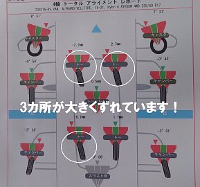 いつもタイヤ館倉吉のホームページをご覧いただきありがとうございます。 以前アルファードに車高調取付とアライメントをしていただいていましたが、 その後測定をされていなかったので、ご来店いただく様にお電話をさせていただきました。 測定してみると 基準からずれが出ていますね! ということ...