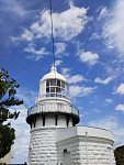 沖泊を出発し、途中多古鼻を回って七類港で迷子になり、 やっと到着したのが、島根半島の一番東にある 美保関灯台です。 この灯台は明治31年に初灯した山陰最古の灯台だそうです。 高台にあるので、かなり小ぶりですね。 併設されているレストランには、初点灯当時のガラス製第一等フレネル式閃光...