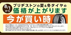 ブリヂストンタイヤの夏&冬タイヤの価格が上がります。