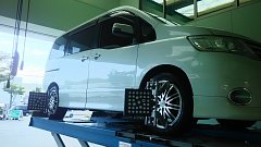 セレナのタイヤ交換をしました。 以前にもレグノGRVをつけていただいていましたが、減ってきたために交換! やはり今回もレグノGRVⅡとなりました。 長持ちプランに加入いただいていましたので、測定してみるとわずかな狂いがありました。 新品タイヤなので調整もすることになりました。