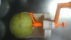 先日いただいた20世紀梨の皮をむくのに便利グッズ(横着グッズ?)を 使ってみました。 包丁で普通にむけばいいんですがちょっと遊んでみました! 梨をさしてくるくる回すだけ! とてもかんたんにきれいにむけますよ!