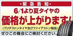 [緊急告知]6/1より乗用車用タイヤの価格が上がります。