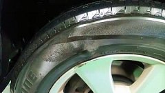 アルファードにお乗りのお客様ですが、 タイヤを縁石にぶつけてしまったとのこと。 見てみるとタイヤの側面にこぶができていました。 タイヤ内部のコードが切れてしまっているために 膨らんでしまいました。 こうなると交換するしかありません。 で、タイヤ交換となるわけですが、 アライメントの狂...