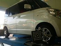 フレアワゴンにお乗りのお客様に、タイヤ交換& アライメント調整&長持ちプランに加入して いただきました♪ ばっちりズレを調整させていただきましたので、 タイヤも偏りなく減ってくれますよ!! ありがとうございました!