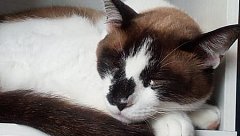 昨日の夜、うちの猫がこうもりをGET!! そのあと満足し熟睡してました・・・・ 画像は寝てるところです。(GETしてるところは見せれません(>О<)