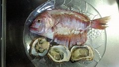 県外に出ている子供が連休を使って帰ってきました。 ということで子供が好きな刺身を作りました! 仕事帰りにスーパーに寄ると真鯛があったので 湯引きにして姿造りにしました。 今が旬の岩ガキもあったので初物も一緒に食べましたよ~。 夏の岩ガキは最高ですね!