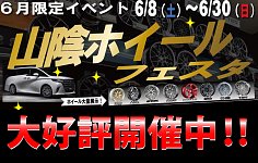 いつもタイヤ館倉吉のWEBをご覧いただきありがとうございます。 山陰ホイールフェスタ開催中です! その内容を今回紹介していきます。 山陰の直営3店舗(倉吉、安来、松江南)の同時開催になります! イベント期間は6月8日(土)から6月30日(日)まで! かつ!6月22日(土)~23日(日)には、メイン...