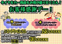 毎週月曜日は60歳以上の方必見❗️ 毎週恒例のシニア感謝デーとなっています! オイル交換が通常価格の20%オフ! その他メンテナンス用品も10%オフ! (オートマオイル、バッテリー、 ワイパー、エアコンフィルターなどなど) 非常にお得な1日となっております♪ いつものお車のメンテナンスを少しでも ...