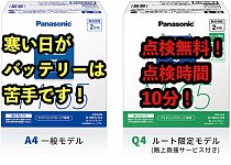寒い日がバッテリーは苦手です!点検無料!点検時間10分!