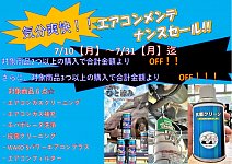 先日より、気分爽快!!エアコンメンテナンスセール☆開催中です。 期間は7/10(月)-7/31(月)迄 暑い夏を快適に過ごしていただく為に カーエアコンメンテナンス用品・作業料金がいつもよりお求めやすくさせていただいております!! エアコンの冷え方が気になる方、この機会にぜひご利用ください...