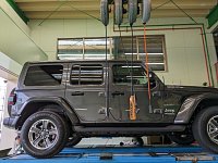先日ジープラングラーの下回りの防錆をしました。 当店のWEBを見て施工事例がたくさんあり、新車なのでやってみたいと来店されました。 車をリフトで上げて防錆剤をかけていきます。 今の時期は凍結防止剤で錆びやすい時期になりますので、防錆コーティングおすすめです。