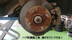 いよいよスタッドレスタイヤへの交換時期となりました。 今回紹介するのはデイズルークスのタイヤ交換時のハブ防錆です。 昨シーズンまで履かれていたスタッドレスが摩耗していたため、 新品タイヤへ交換することになったわけですが、ホイールを外してみると ハブの錆がかなり出ていました。 純正ホ...