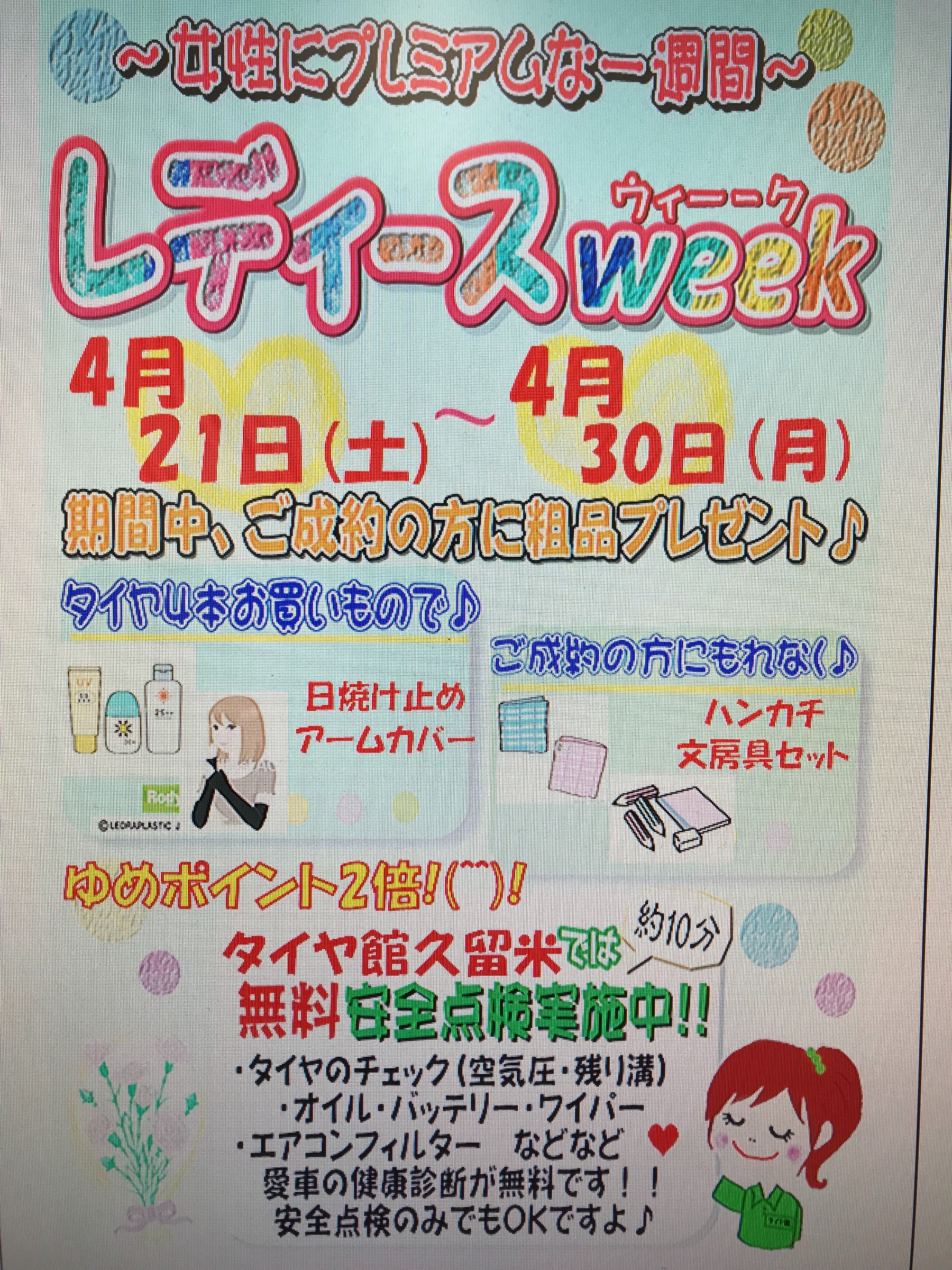 今週末の21日から月末いっぱいまでレディースweek開催します*ˊᵕˋ)੭