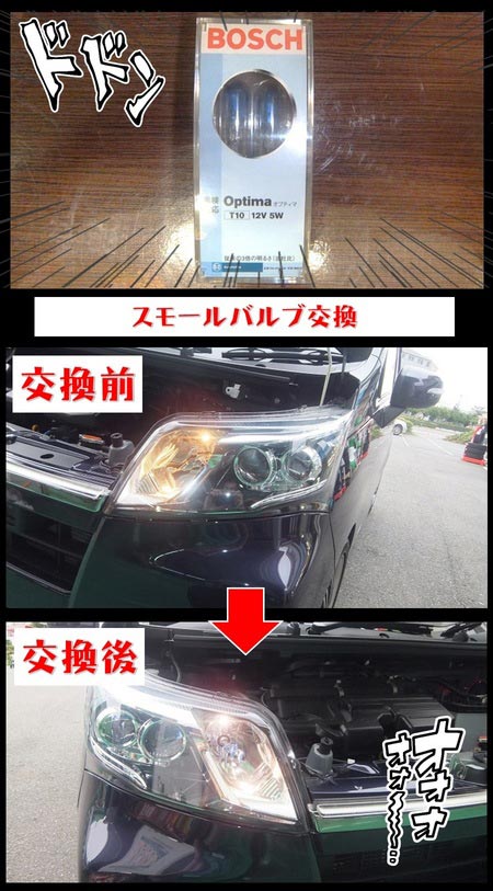 今日は先日車高調を組んだムーブカスタム君にヘッドライトのバルブ交換をしました!