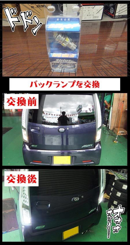 交換後のバックランプの明るさはスゴイですね!リアガラスにスモークフィルムを貼っている車やバックカメラ付きの車には視界確保の為に特におススメします!