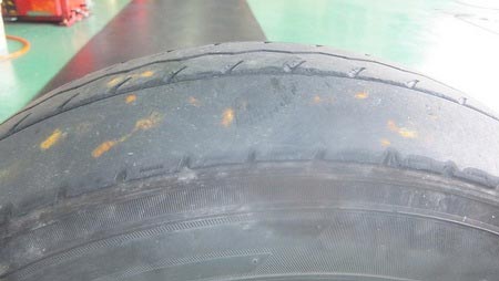 左の写真は軽トラックから外したタイヤなのですが溝がすり減って、外側がツルツルなのが分かるかと思います。