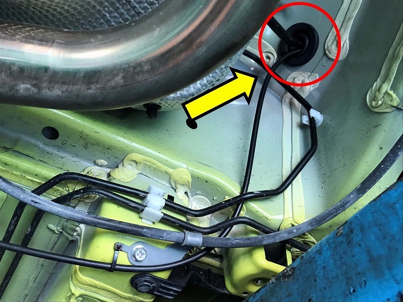 今回は燃料タンクの横のこちらから車内に引き込みました。
