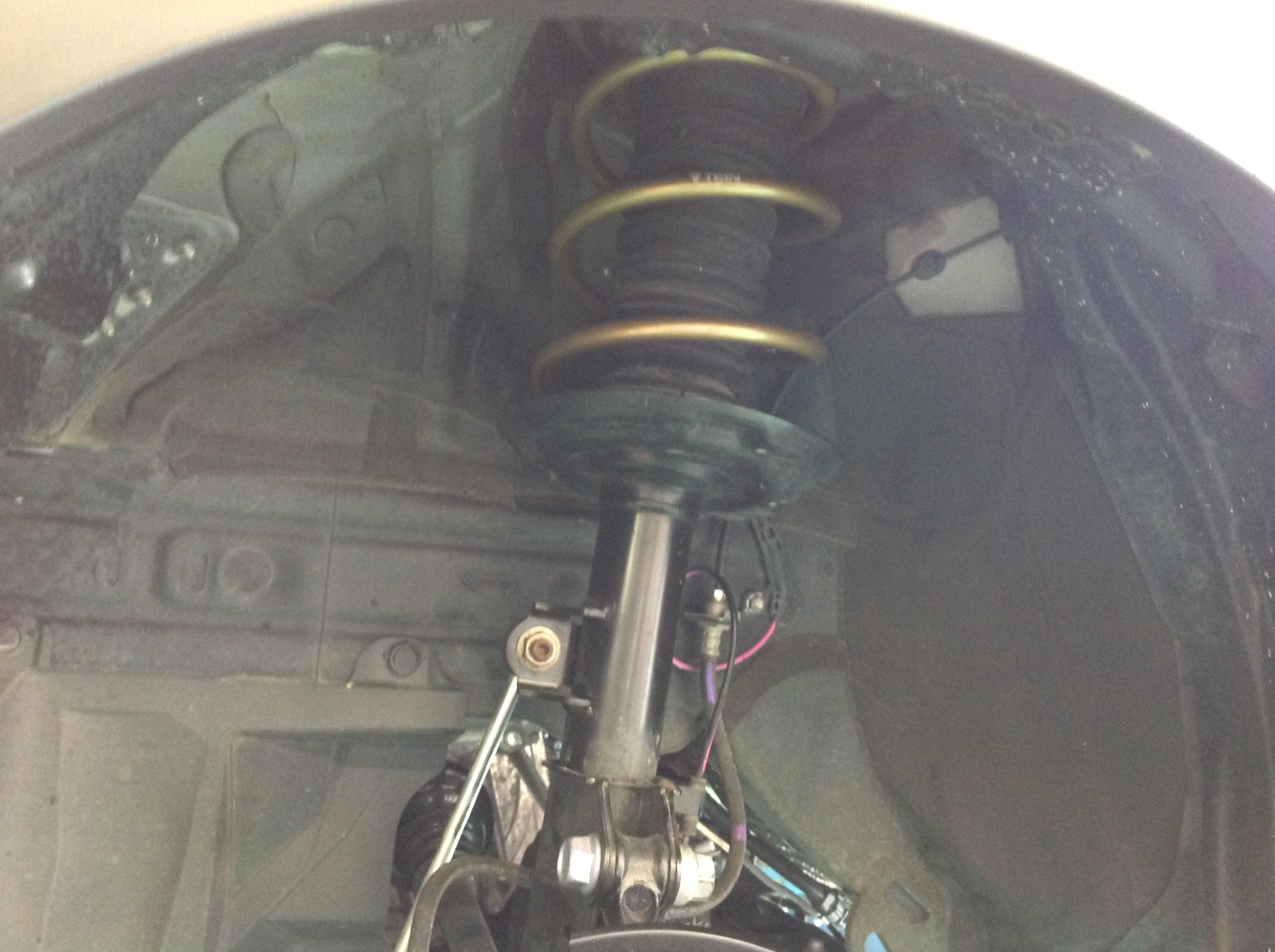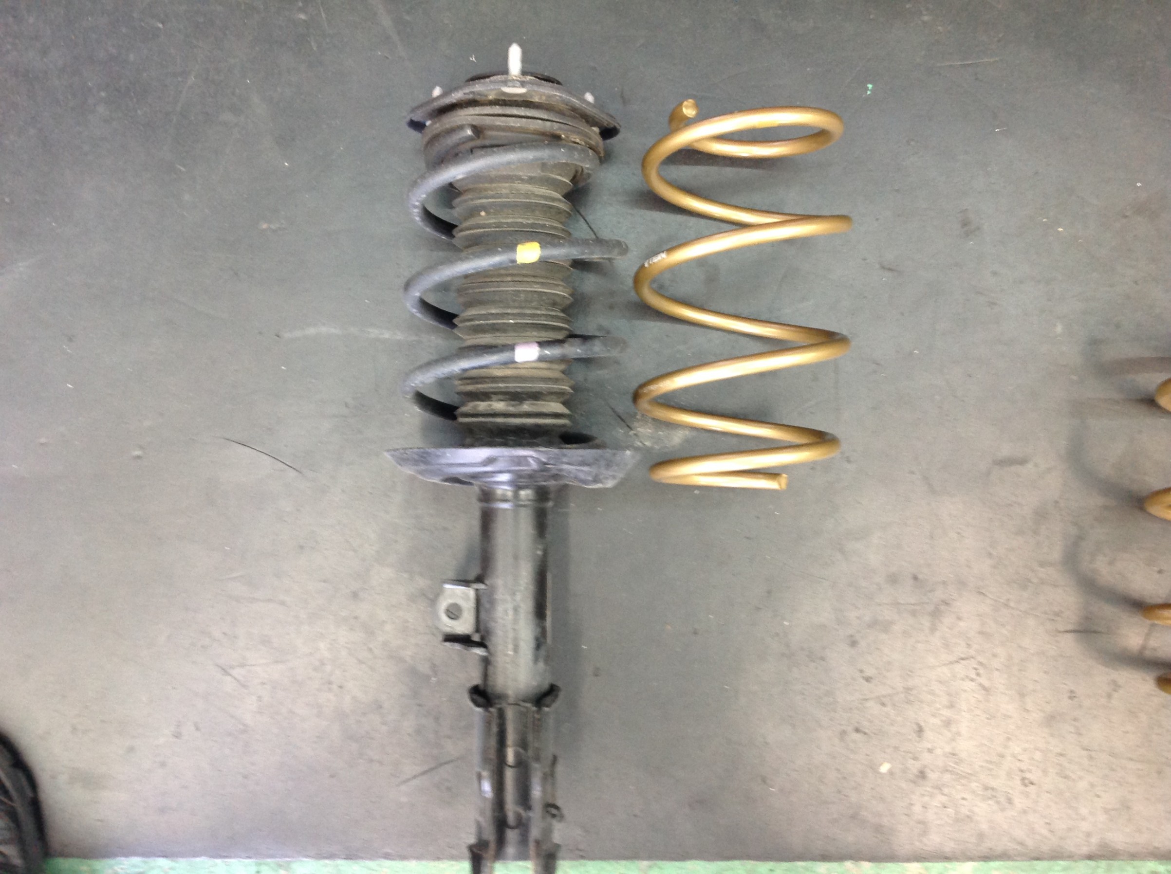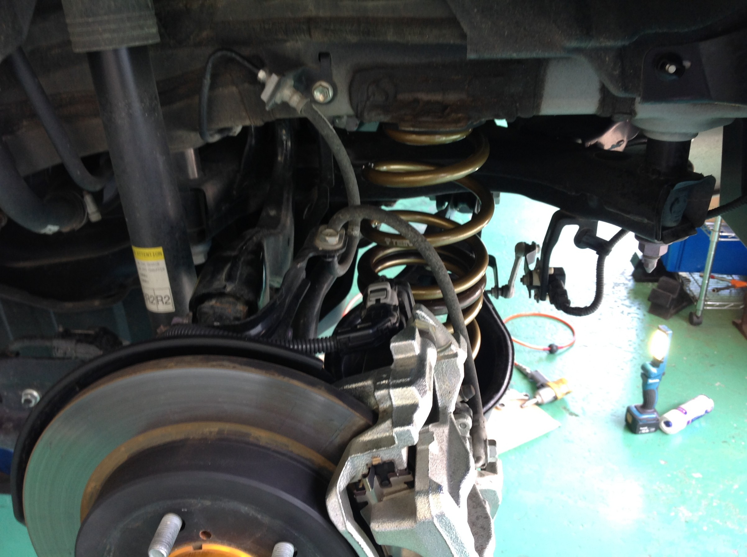 前輪側のサスペンションを取り外しスプリングを交換します。