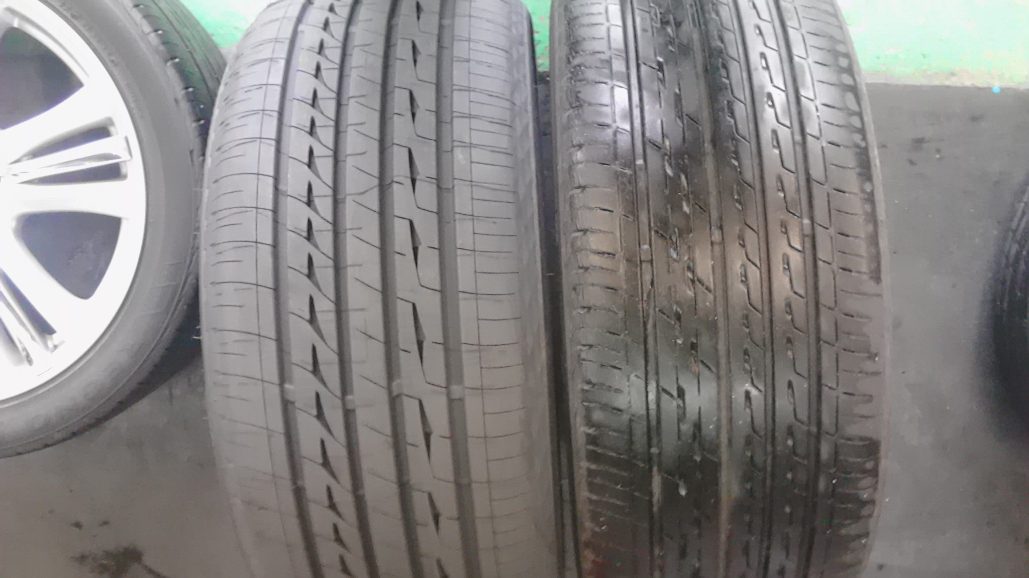 向かって右側が交換前のタイヤ