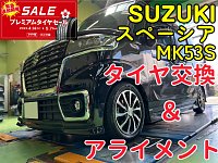 タイヤ交換とアライメントの同時作業がオススメ!!スズキ スペーシア MK53Sのタイヤ交換!
