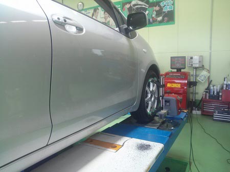 アライメント調整では、お客様のお車に合わせ、 その足まわりの微妙な角度の歪み=骨盤のズレを調整します。