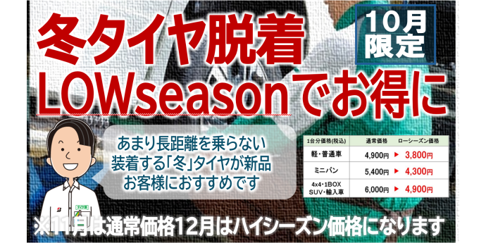 【履き替えをされるお客様へ】冬タイヤへの履き替えは10月がお得です!