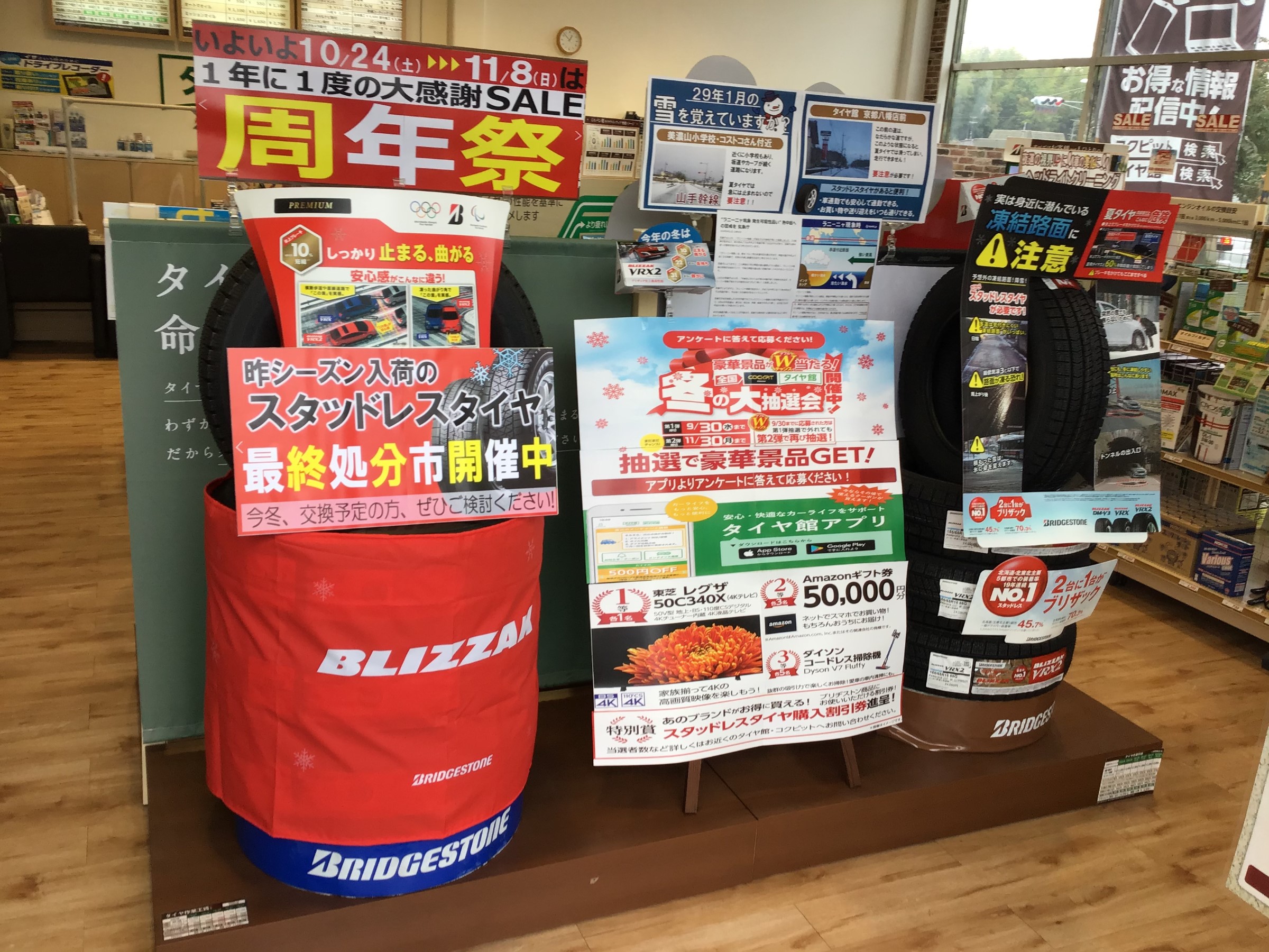 最終処分市開催中! ポスト 2020年10月22日 いつも当店ホームページをご覧いただきありがとうございます。 朝晩、かなり寒くなりましたね!! 当店では只今、冬タイヤの最終処分市セールを開催いたしております。 お見積りだけでも大歓迎です。 また冬タイヤをお持ちのお客様は1本お持ちいただければタイヤの状態を確認させていただきます。 お気軽にお声がけください。 お問い合わせはコチラ→TEL075-874-3413 担当:にしわき