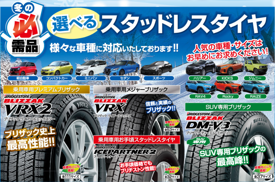 コストパフォーマンスに優れたお手頃品からブリザック史上最高性能のVRX2まで