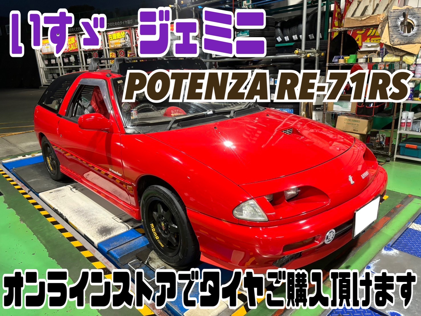 いすゞ ジェミニにタイヤ交換&アライメント作業しました! ブリヂストンオンラインストアでご購入いただきました(^^♪