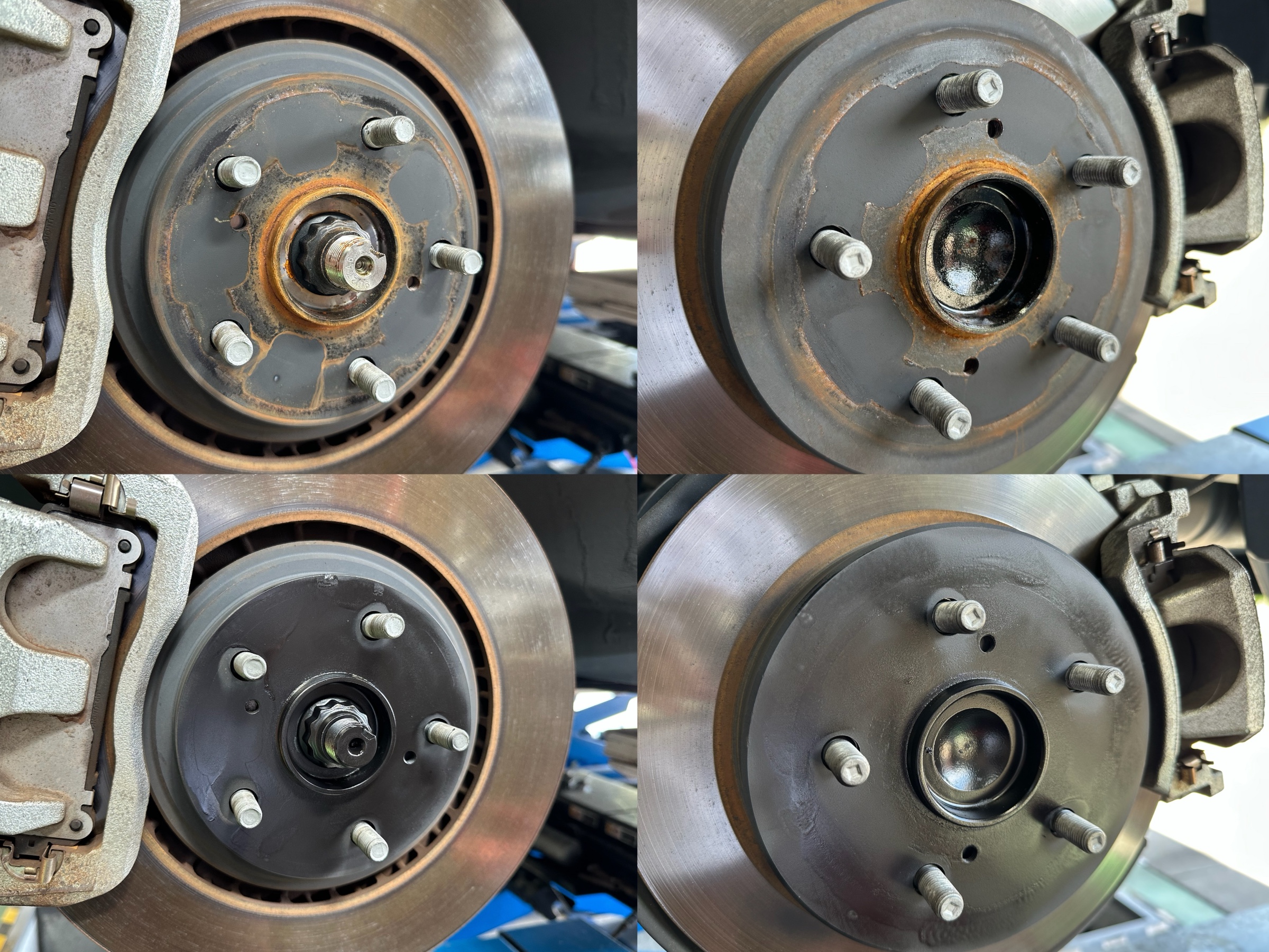 ハブというところをサビ取り・サビ止めの施工を行います。