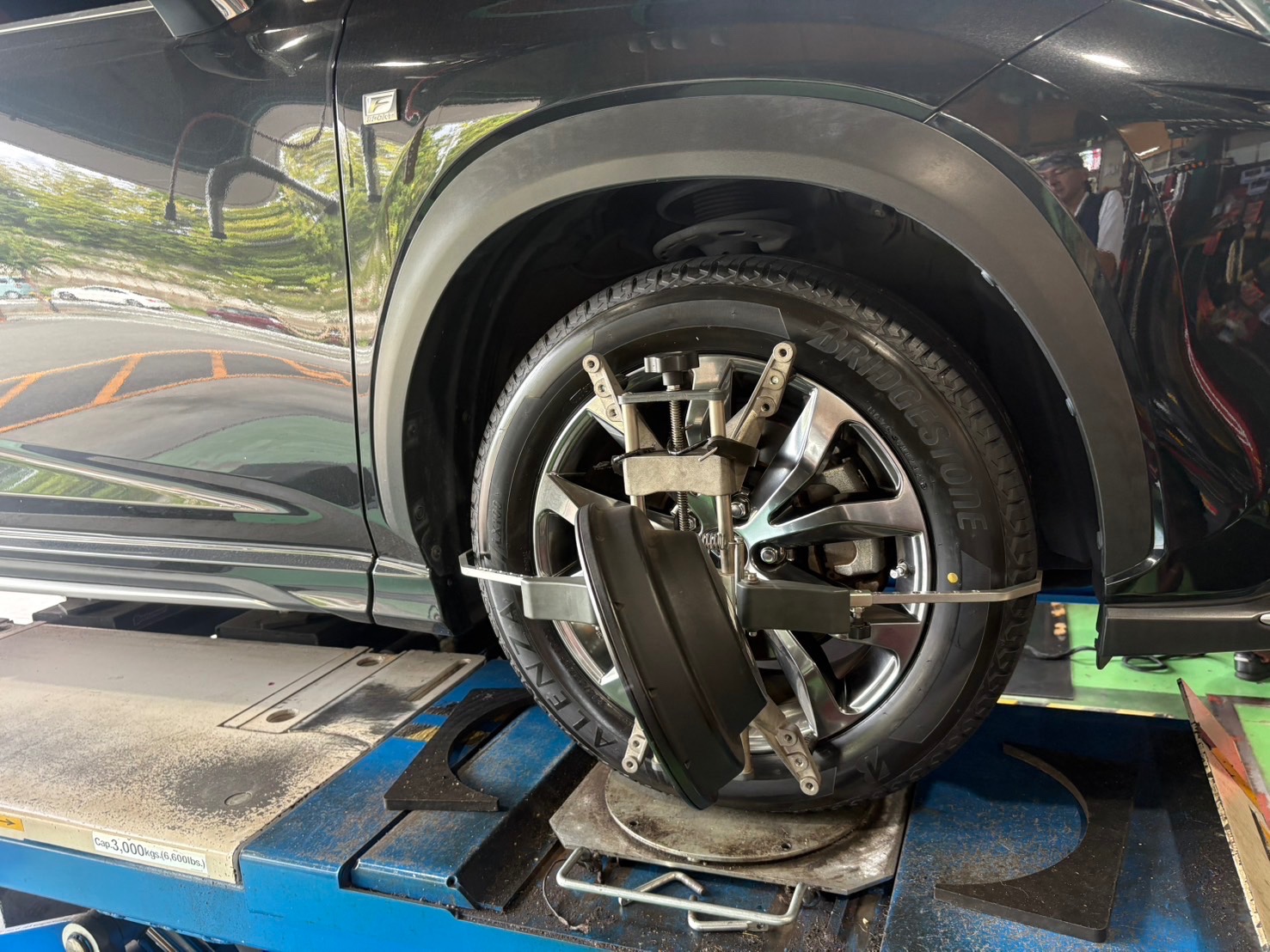 タイヤ交換作業が終われば、次はアライメント作業です。