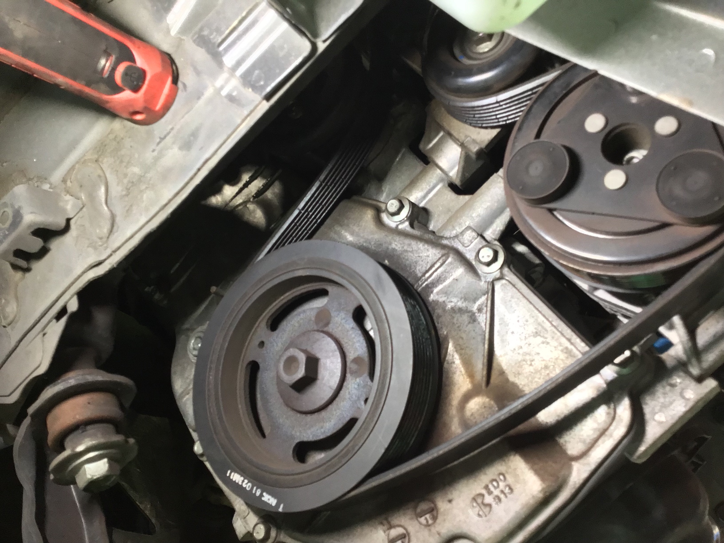 例えば…このVベルトによってエアコンやパワステ、さらにバッテリーの発電とエンジンの駆動を利用して動かしています
