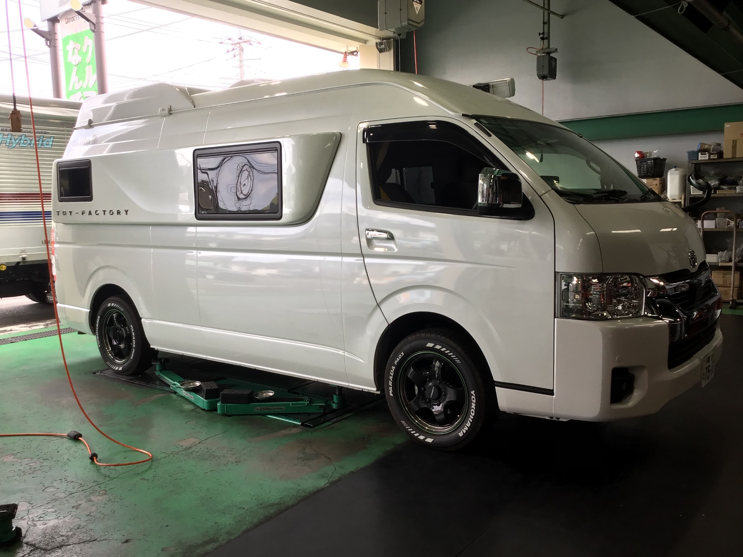 ハイエース キャンピング ハイエース フラフラ 突き上げ 跳ね上げ 横風 乗り心地改善 原因 キット ダンパー 強化 社外 ショックアブソーバー 価格 KW