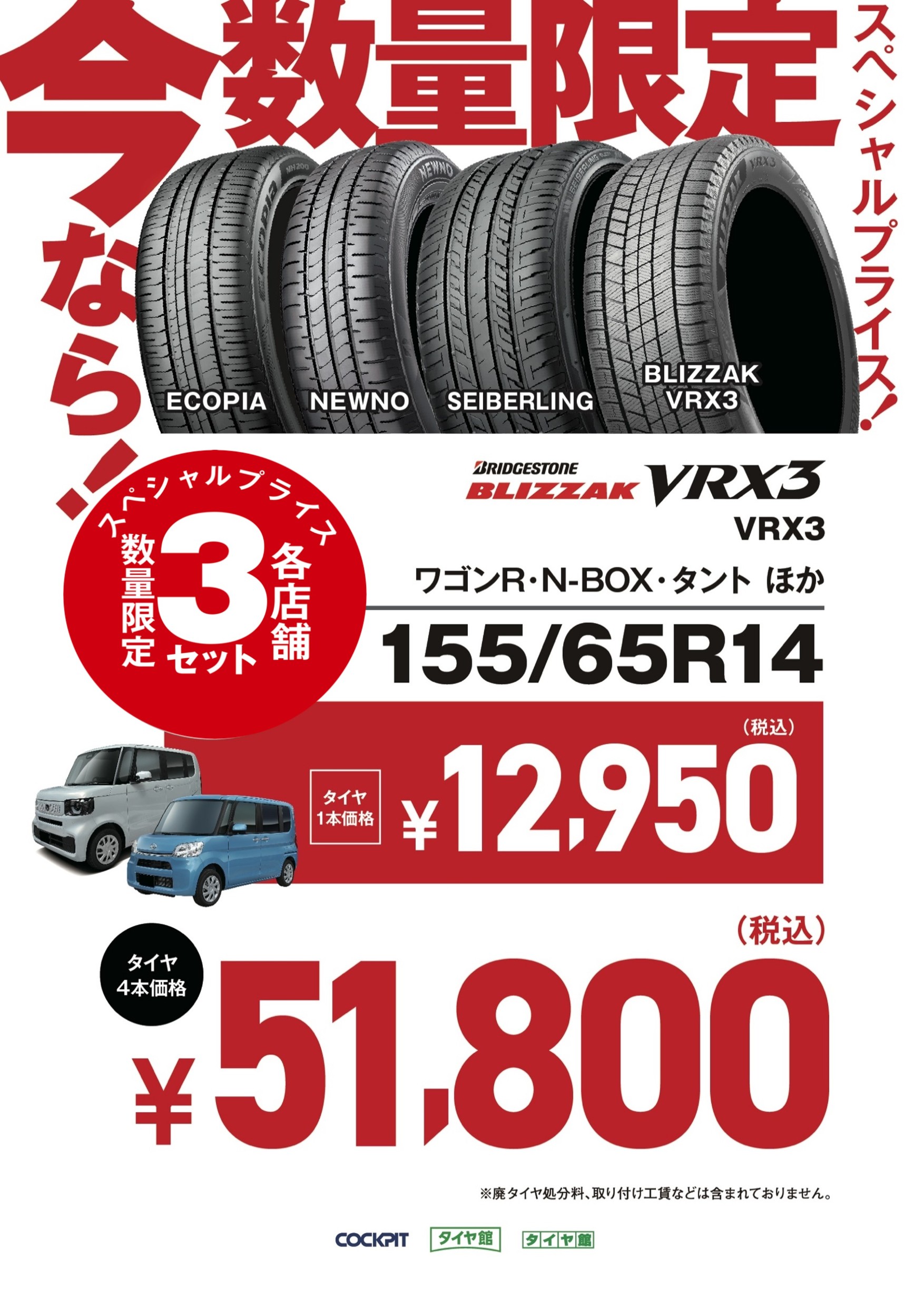 BLIZZAK VRX3 155/65R15 タイヤ1本価格 ¥12,950(税込)
