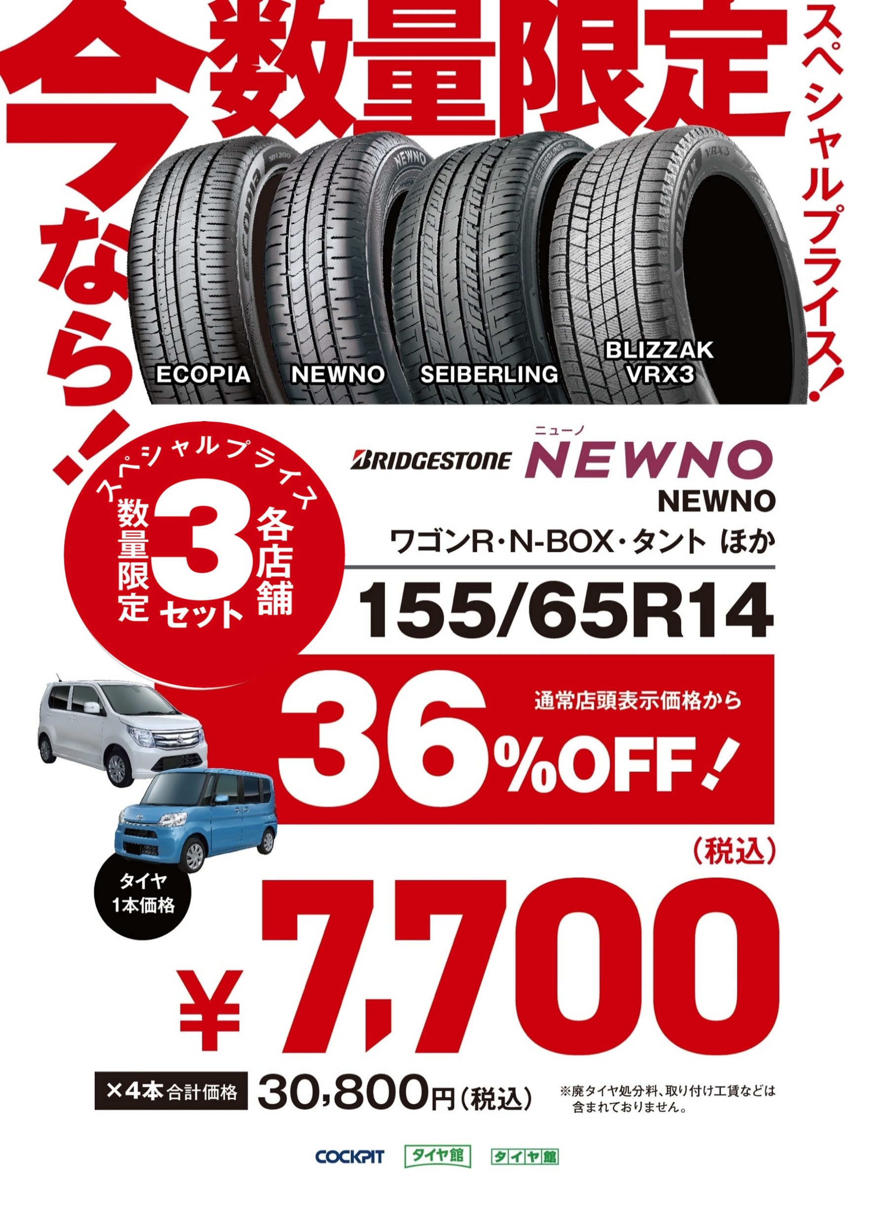 NEWNO 155/65R14 タイヤ1本価格 ¥7,700(税込)