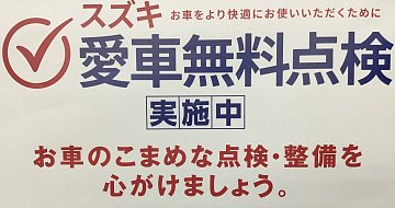 スズキのお車にお乗りの皆様へ 愛車の点検してみませんか?? エンジンオイル、冷却水、バッテリー、ウィンドーウォッシャー液などなど 厳選された15項目が無料で点検できちゃいます!! タイヤ館で実施しているのはウチのお店だけかも!? この機会に是非ご利用くださいまし♡ ※混雑状況によりお待...