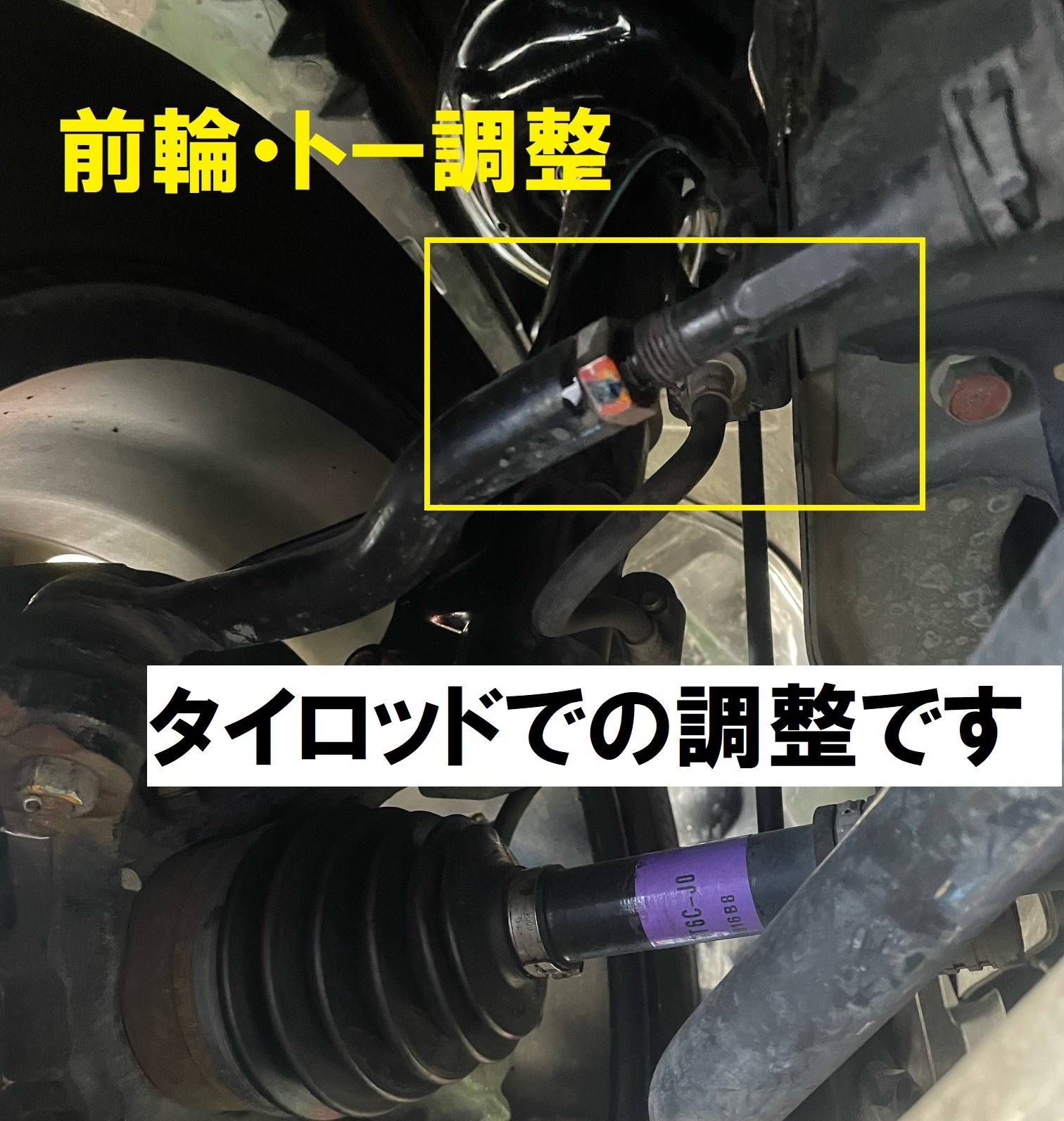 トーの調整方法はタイロッドの長さを変えて調整していきます。