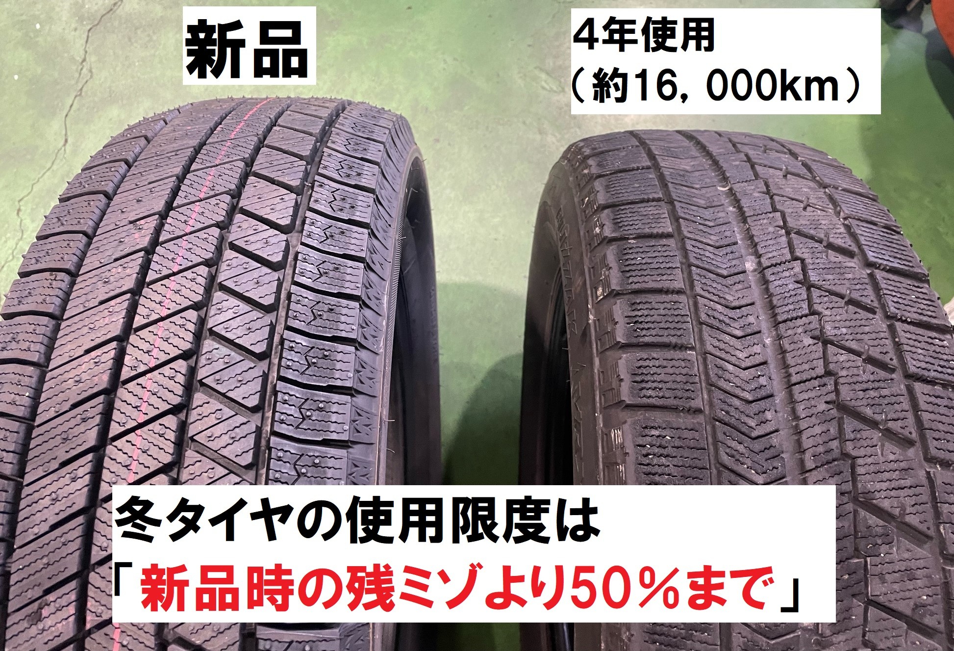 映り込んではいませんが、冬タイヤとしての使用限度の目印「プラットホーム」が露出していました。