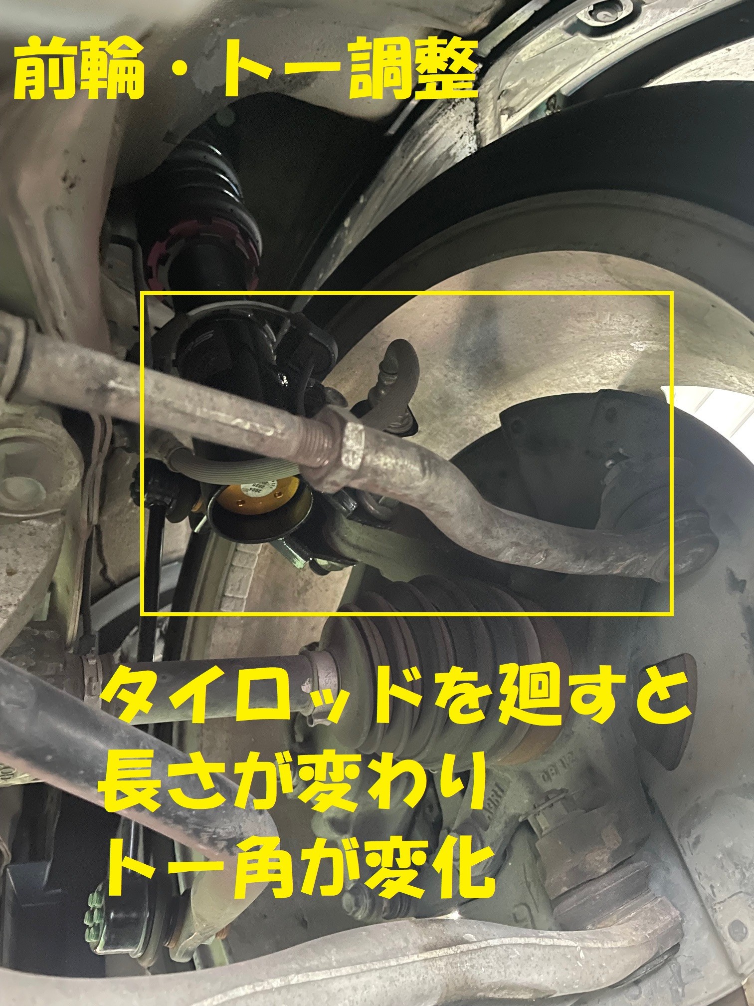 タイロッドの長さを伸ばすor縮める事でトー角が変化する仕組みです。